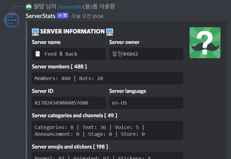 확대해보면 다음과 같습니다. 위 예시처럼 서버의 용도에 따라 내용과 문구를 다양하게 꾸밀 수 있죠!