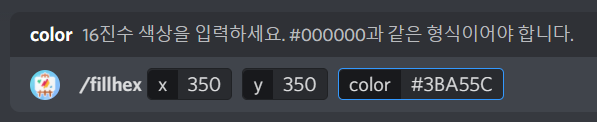 점을 찍으시려면 /fillhax 명령어를 입력하시면 됩니다. 앞의 x와 y에는 점을 찍고 싶은 위치의 x좌표와 y좌표를 입력해줍니다. 맨 뒤의 color에는 점의 색상을 색상 코드를 입력해주시면 됩니다.
