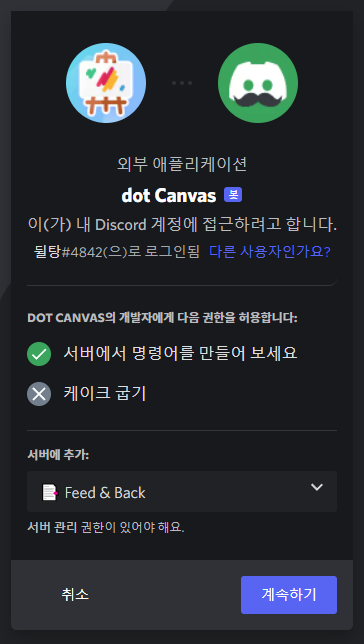 dot Canvas 봇 초대하기