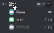 좌측의 채널에서 채널 제목을 클릭해주세요. (왼쪽의 25라는 숫자는 최대 카메라를 틀 수 있는 인원 제한을 뜻하는 듯합니다. 또 사람 닉네임 옆에 카메라 표시로 누가 방송을 하는지 알 수 있어요.)