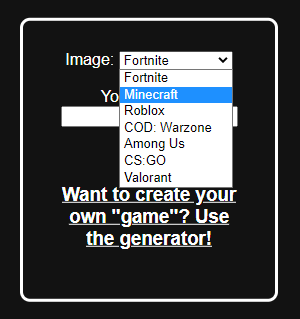 Image 옆의 탭을 누르면 표지로 어떤 게임이 보이게 할지를 선택할 수 있습니다. 포트나이트, 마인크래프트, 로블록스, 콜옵, 어몽어스, 카스, 발로란트가 있네요.