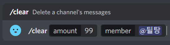 이 일을 하는 가장 대표적인 봇은 MEE6입니다. /clear라고 명령어를 치고 amount 항목에 숫자를 넣어 해당 숫자만큼의 메시지를 지울 수 있습니다. 또 member 항목을 입력하면 해당 멤버의 메시지만 지울 수도 있지요. 이러한 기능들에 대한 자세한 설명은 아래 글을 살펴봐주세요!