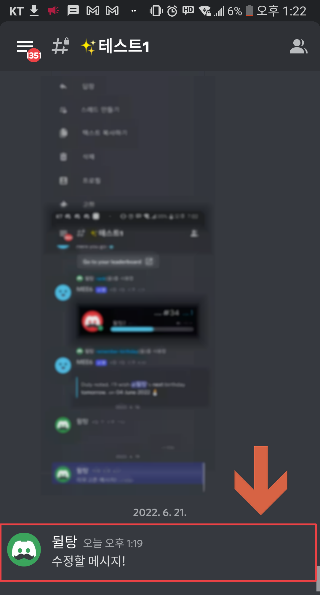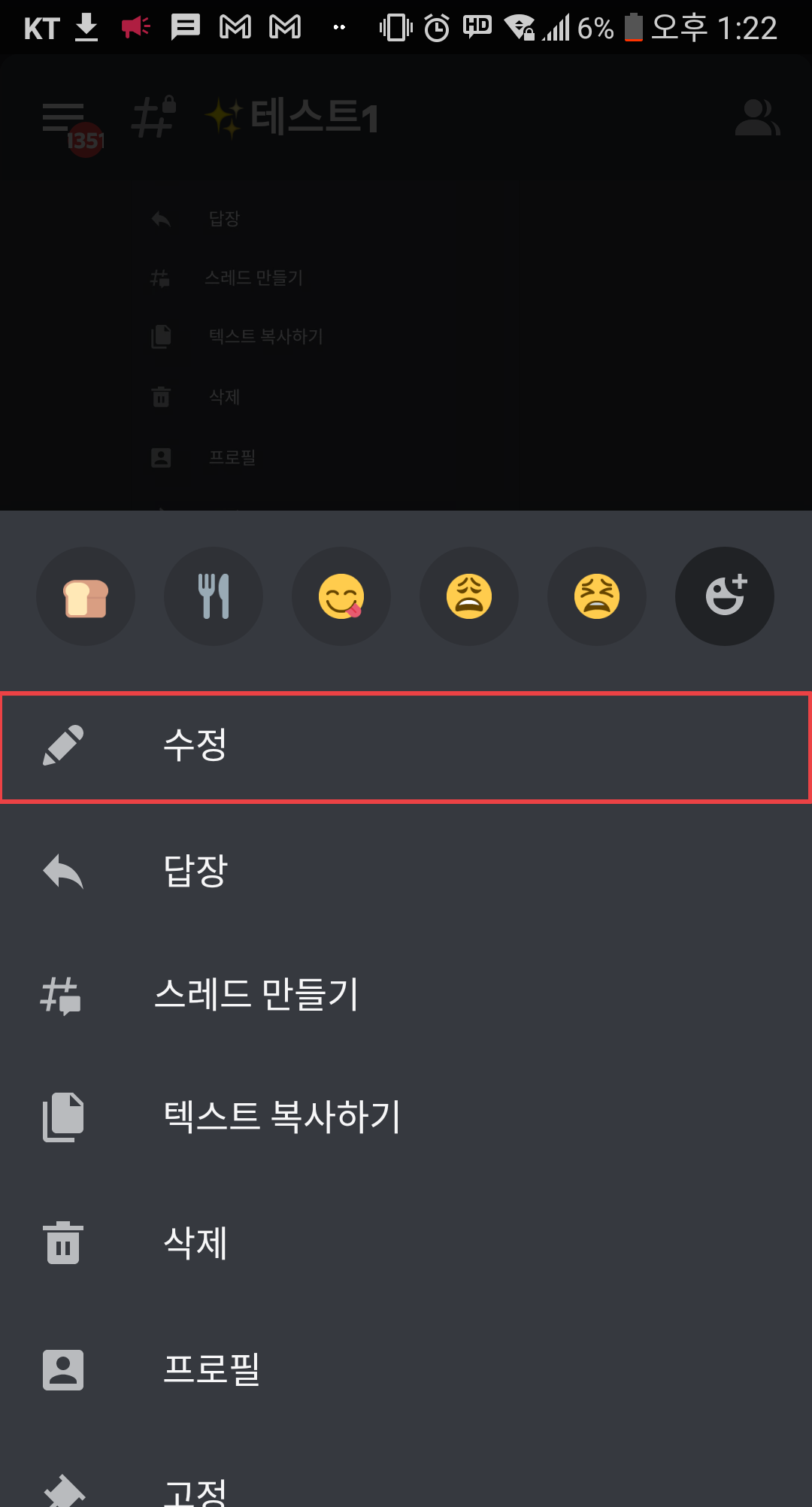 모바일에서 디스코드 메시지를 수정하시려면 우선 수정할 메시지를 꾹 눌러주세요.