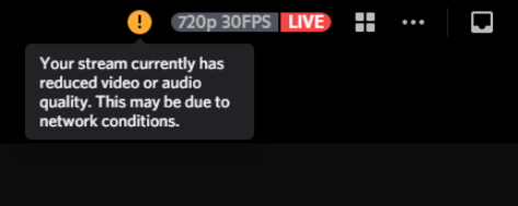 디스코드 서버에서 음성 채널에 들어가 다른 사람의 영상이나 화면 공유를 보려 할 때, 계속해서 무한 로딩되며 오른쪽 위에 다음과 같이 노란색 느낌표가 뜨는 경우입니다. 마우스를 느낌표에 올려 안내를 확인해보면, 한국말로 '시청 중인 방송의 영상 또는 오디오 품질이 낮아요. 네트워크 문제일 수 있어요.'라고 뜹니다. 영어로는 'The stream you're viewing currently has reduced video or audio quality. this may be due to network conditions.'라고 뜹니다. 보통 화면 미리보기는 잘 뜨는데, 막상 클릭해서 들어가 보면 보이지 않는 경우가 많습니다.