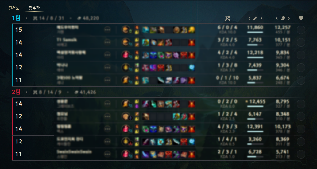 게임이 끝나고 결과 화면을 볼 때라고 하네요.