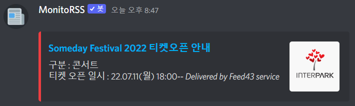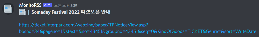 디스코드에서 인터파크 티켓 알림 받는 방법