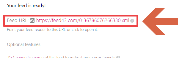 지금까지 단계를 모두 완료하셨으면 Your feed is ready!라는 문구가 뜹니다. 그 아래 Feed URL을 복사해 RSS 리더기에 넣어주시면 됩니다!