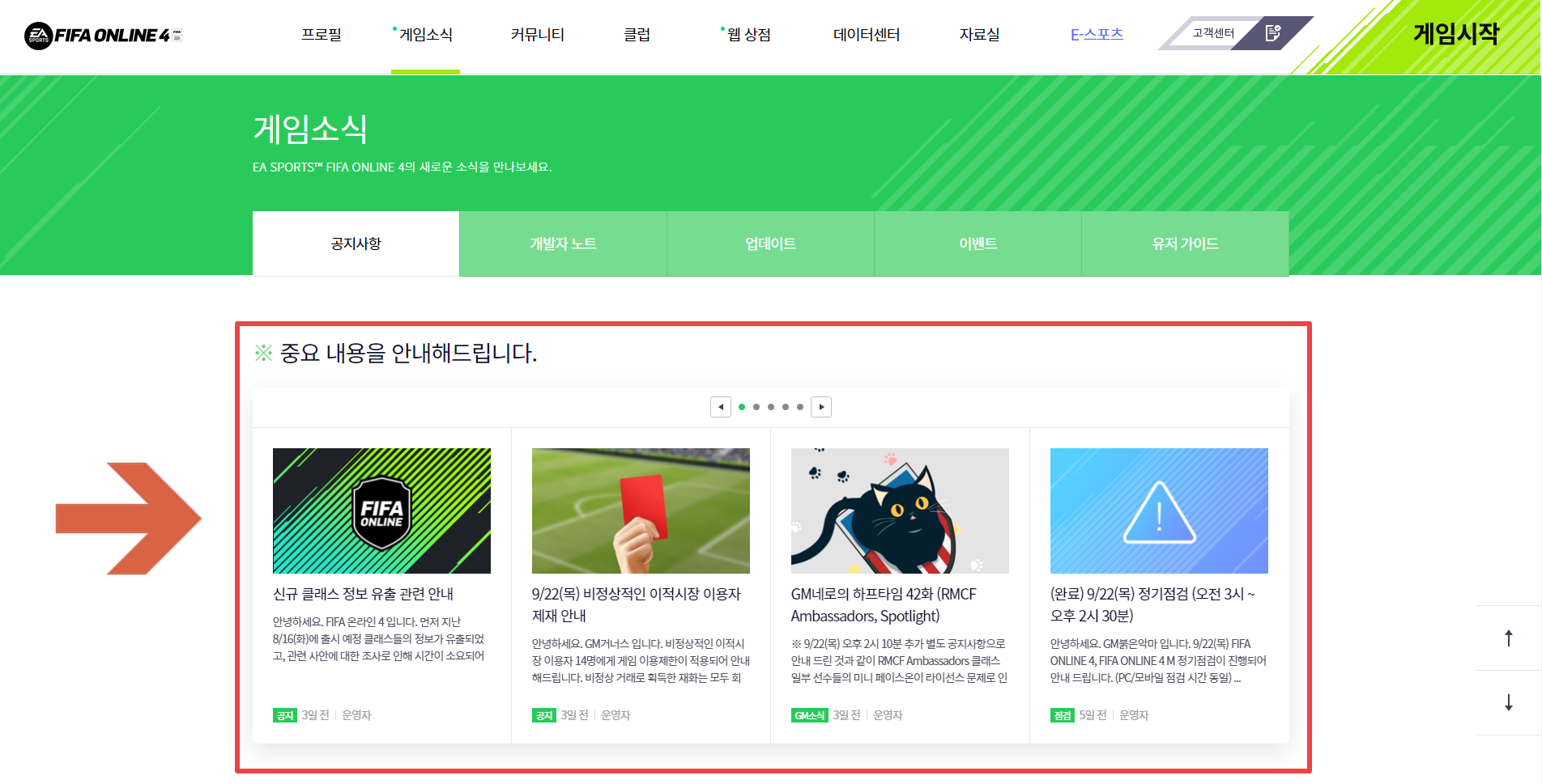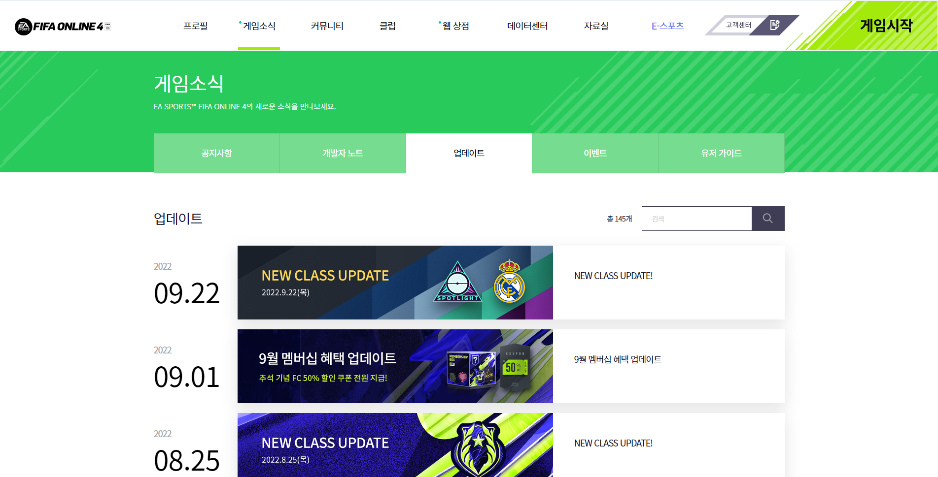 - 게임 소식 : https://fifaonline4.nexon.com/news/notice/list