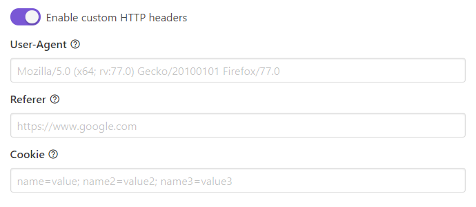 custom HTTP headers
