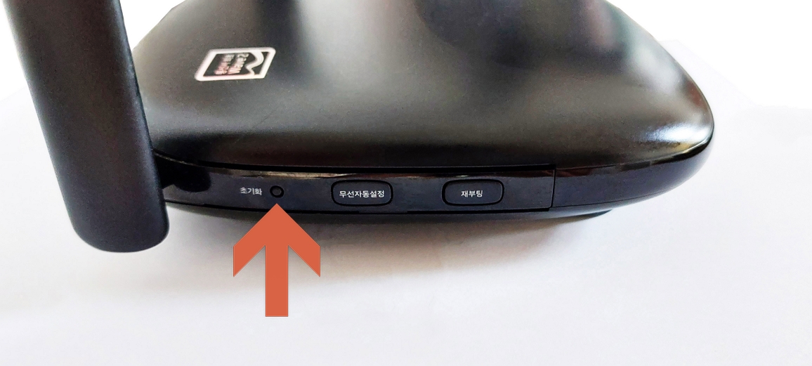 혹은 공유기 옆면의 초기화 버튼을 눌러서도 초기화시키실 수 있습니다.
