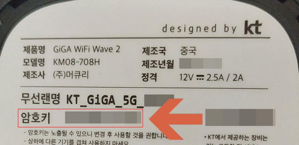 암호키는 다음과 같이 공유기 바닥에 쓰여 있습니다.