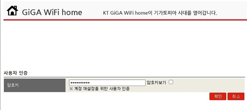 이후 KT의 경우에는 위와 같은 창이 나오면 아이디와 비밀번호를 입력해줍시다. 만약 이전에 접속한 적이 없다면 아이디 ktuser, 비밀번호 homehub를 입력해줍시다.