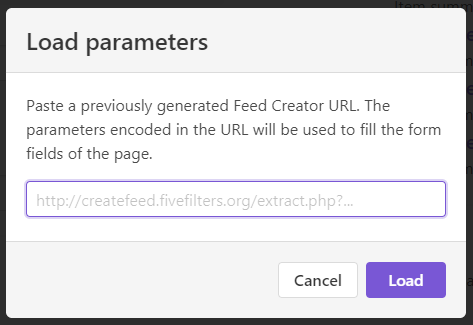 fivefilters 사이트에 들어가서 위쪽의 Load parameters를 클릭한 후