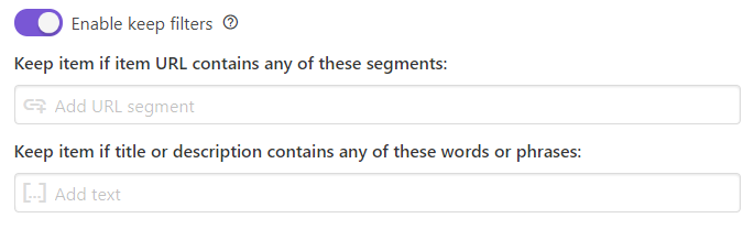 원하는 글을 선택하는 옵션으로 화이트리스트 설정이라고도 볼 수 있겠네요. 위쪽의 URL 설정은 URL에 해당 글자가 포함되어 있다면 선택해줍니다. 아래쪽은 타이틀이나 설명에 해당 글이 포함되어있다면 선택해줍니다.