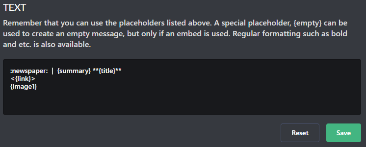 MonitoRSS 봇을 쓰실 경우 Message의 Text 부분을 다음과 같이 설정하시면 글을 더욱 깔끔하게 보실 수 있습니다.