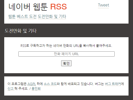 투믹스는 자체적으로 RSS를 지원하지 않기 때문에 만들어줘야 합니다.
