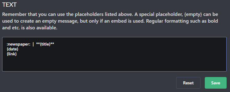 MonitoRSS 봇을 쓰실 경우 Message의 Text 부분을 다음과 같이 설정하시면 글을 더욱 깔끔하게 보실 수 있습니다.