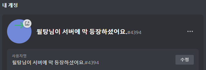 다음과 같이 프로필이 보인다면 완료된 것입니다! 이제 채팅에서 아무 말이나 치면 낚시 입장 메시지, 부스트 메시지가 됩니다.
