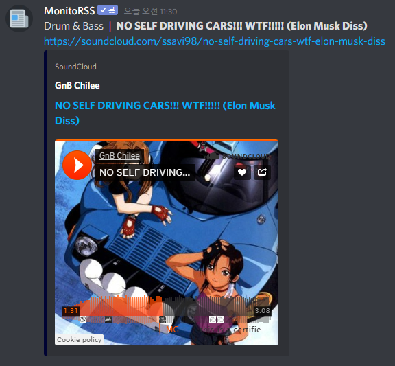 MonitoRSS의 경우 (사운드클라우드 알림을 디스코드로 받기)
