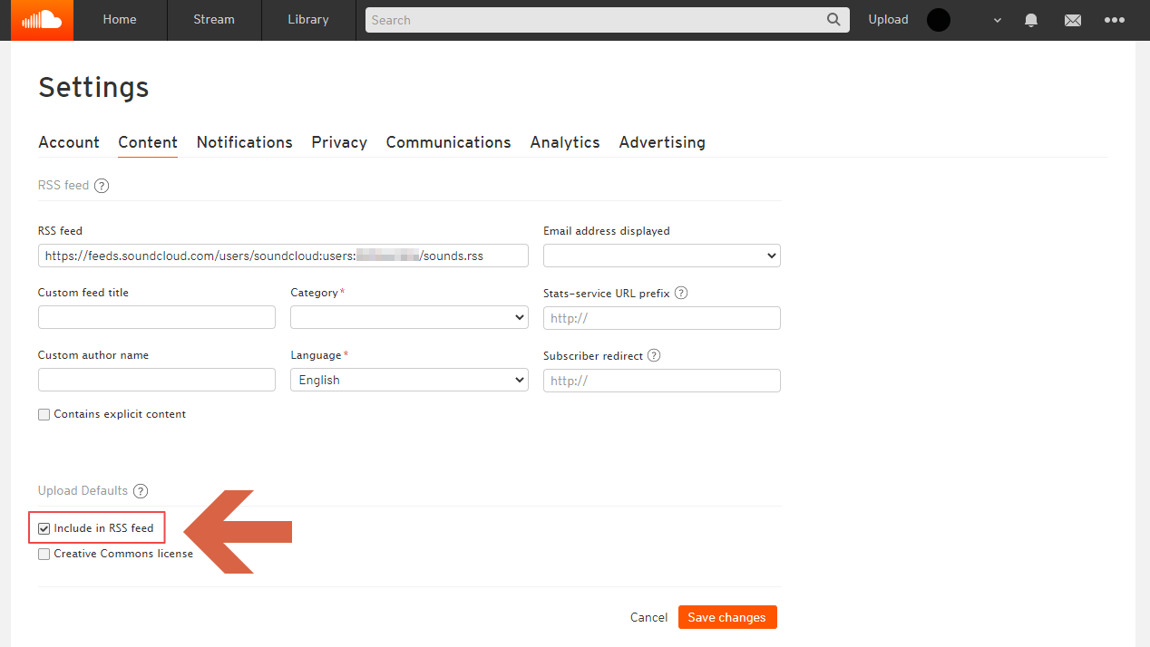 채널 주인이 Settings > Content에서 Include in Rss feed 설정을 해두었을 경우에만 사운드클라우드 RSS 기능을 이용할 수 있습니다. 만약 하지 않았다면 어쩔 수 없이 RSS 메이커 사이트들을 이용해야 합니다.