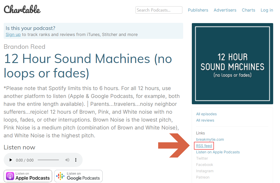 하지만 이 방법은 귀찮으므로 Chartable이라는 스포티파이 쇼 순위 사이트를 이용하는 것이 좋습니다. 다음과 같이 RSS를 누르면 됩니다!