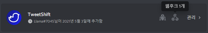 봇에 대한 정보와 함께 봇이 관리하는 웹후크의 정보가 뜨게 됩니다.