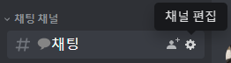 특정 채널에 웹훅을 만들려면 일단 채널 편집으로 들어가야 합니다. 채널명 옆의 톱니바퀴를 클릭하거나 위에서 마우스 우클릭을 해주세요. 메뉴가 나오면 채널 편집을 눌러주세요.