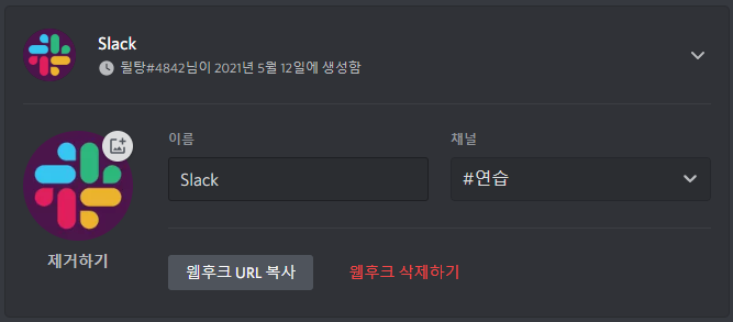 연결한 웹훅 확인하기