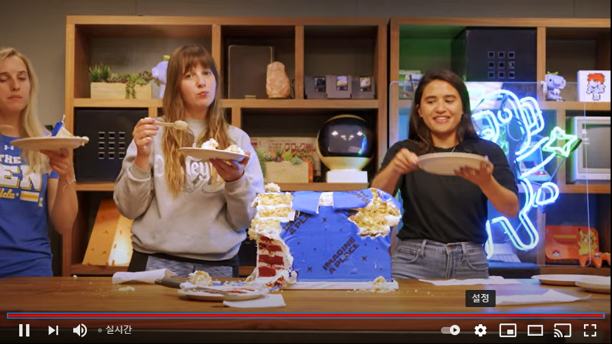 다 같이 케이크를 먹는 것으로 마무리가 됩니다.