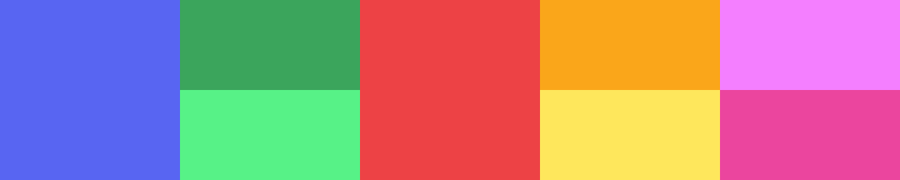 - 파랑(#5865f2) : 새로운 디스코드의 상징색입니다. 채도가 올라갔어요. blurple이라 불립니다.