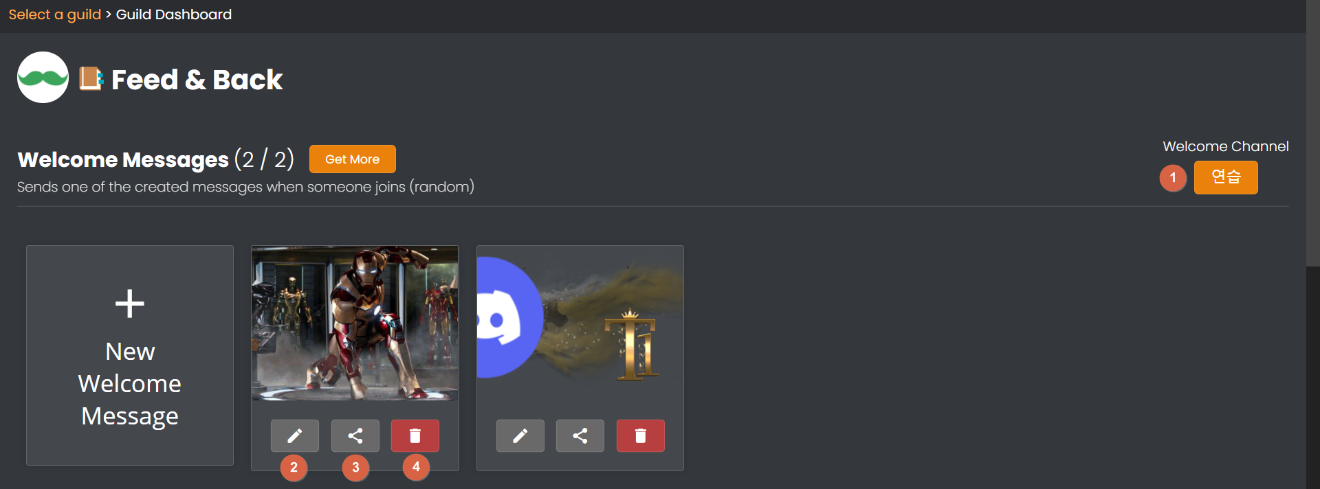 들어가셨으면 위쪽의 + New Welcome Message를 눌러서 설정하시면 됩니다!