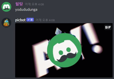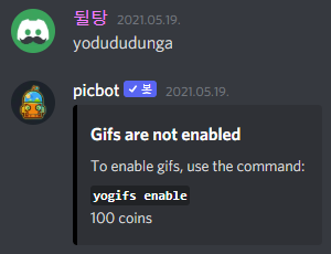 다시 디스코드로 돌아와 yogifs enable을 치시면 gif 명령어가 가능합니다!
