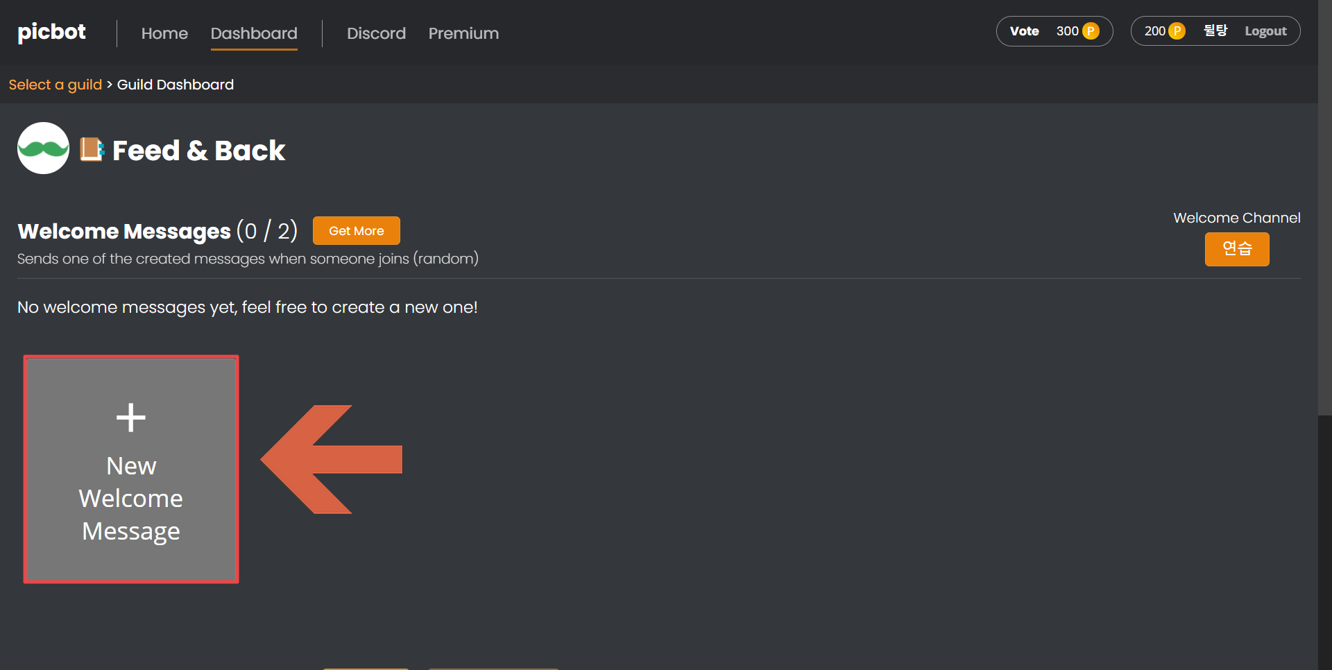 들어가셨으면 위쪽의 + New Welcome Message를 눌러서 설정하시면 됩니다!