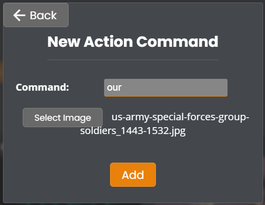명령어(Command)와 사용할 이미지를 선택해주세요. 명령어는 한글은 불가능합니다. 기본 명령어 접두사는 yo이며, 따라서 설정하신 명령어 앞에 yo를 붙이면 작동하실 수 있습니다. 예를 들어 위의 경우에는 명령어를 our라고 설정했으므로 yoour라고 입력하시면 작동하게 됩니다.