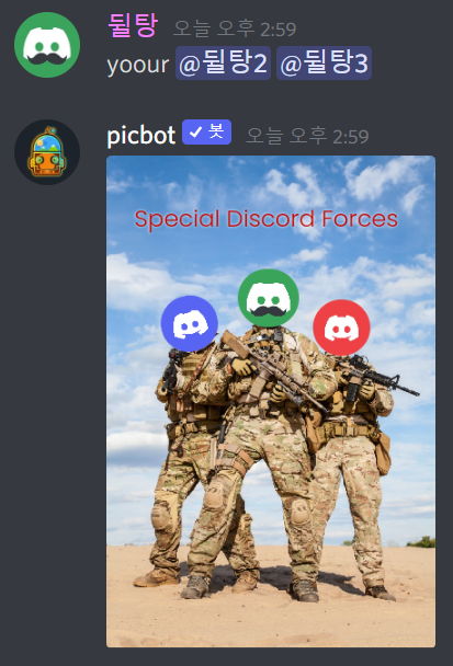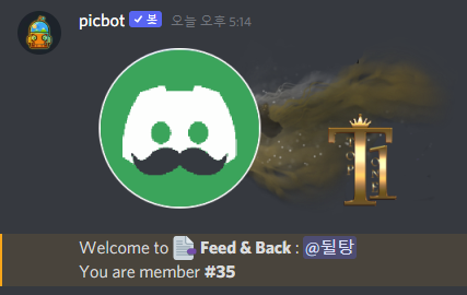 그림 내에 텍스트를 추가해줍니다. 1번과 다른 점은 1번은 일반 디코 채팅처럼 이미지와 함께 보내지지만, 이것은 그림 내에 삽입된다는 점입니다. @user@, @guild@, @members@로 1번과 같이 해당 내용을 넣을 수 있습니다.