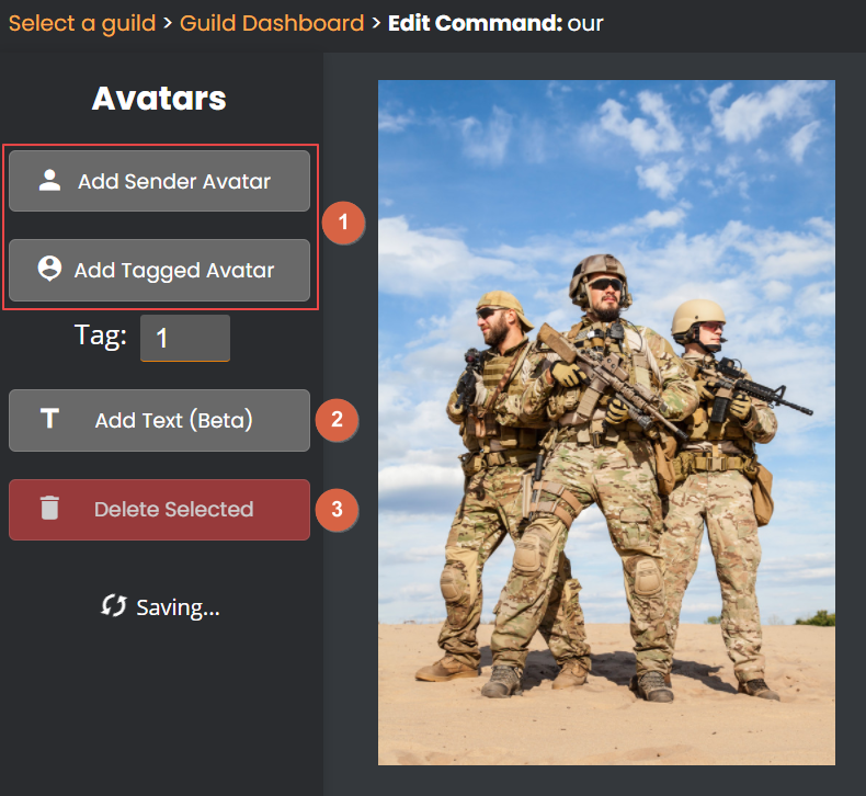Add Sender Avatar는 메시지를 보낸 사람의 아바타를 추가합니다. Add Tagged Avatarv는 메시지에 맨션 된 사람의 아바타를 추가합니다. 입장 메시지와 다르게 여러 사람의 아바타를 넣을 수 있는 것이 특징입니다.