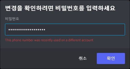 디스코드 휴대폰 인증에서 "이미 이 번호를 사용중인..."이라 뜰 때 해결법