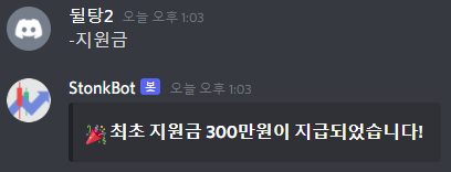 주식봇으로 모의 주식도 가능합니다. 다음과 같이 최초 지원금 300만원을 받은다음