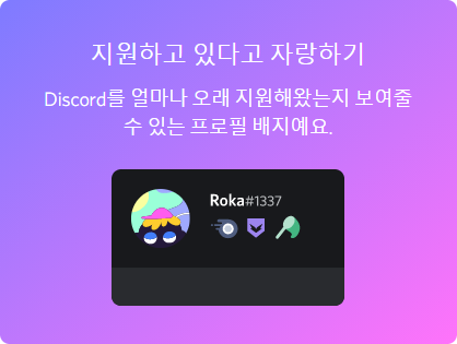 니트로를 구독하면 언제부터 니트로를 구독했는지, 언제부터 서버 부스트를 했는지 배지가 생기게 됩니다.