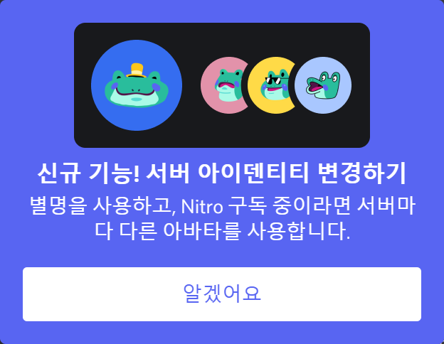 서버 내에서도 사용이 불가능하던 움짤 이모티콘이 사용 가능하게 바뀌게 됩니다.