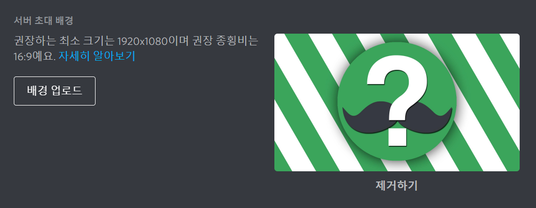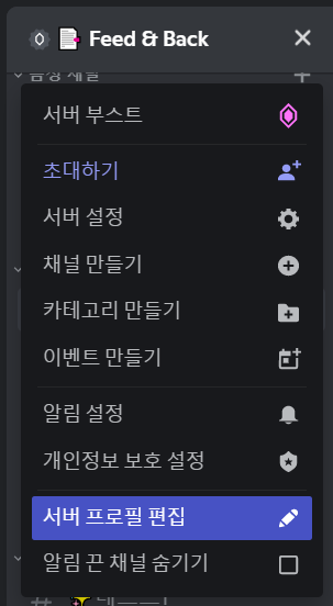 움짤(gif 파일)을 서버 아이콘으로 넣을 수 있습니다! 위와 같이 마우스를 올려놓으면 서버 아이콘이 움직이게 됩니다! 서버 설정에서 아이콘을 변경해주세요. 아이콘은 위에서 소개하였던 디스코드 아바타 메이커를 쓰면 쉽게 만들 수 있습니다.
