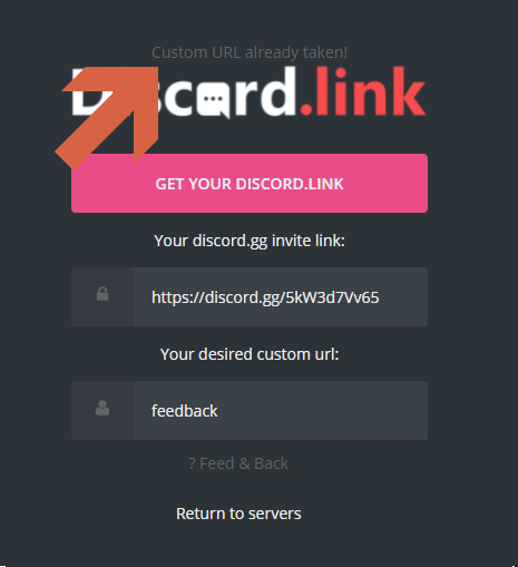 아무도 쓰지 않는 겹치지 않은 url을 입력하면 위에 Your link is available at discord.link/(입력한 링크)라고 뜹니다. 이제 이 링크를 가지고 사람들을 초대할 수 있습니다.