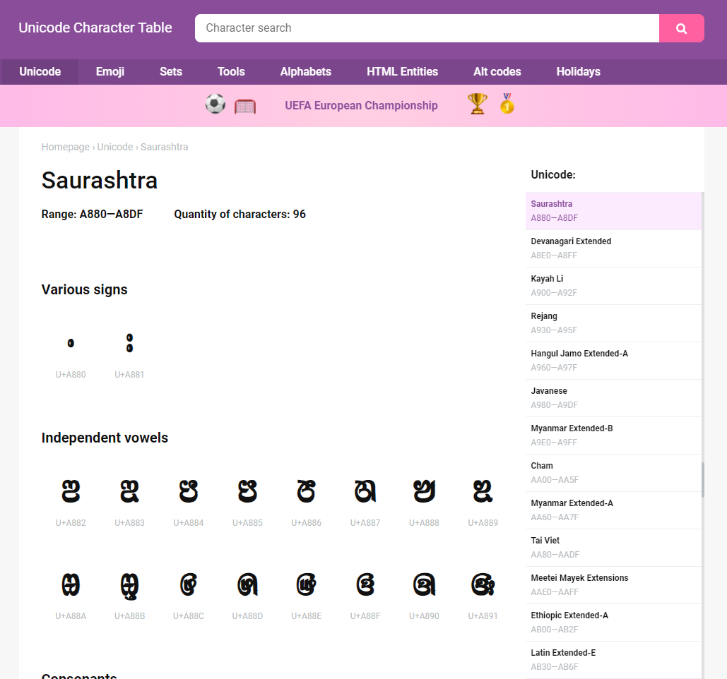 위의 아스키코드는 잘 보면 영문과 숫자(그리고 몇몇 기호)밖에 없는 것을 확인할 수 있습니다. 그러면 한글과 같은 다른 문자는 어떻게 되는 걸까요? 디스코드에서는 이후 문자들의 순서에 대해서는 유니코드 순서를 따릅니다. 유니코드란 유니코드 협회에서 제정한 전 세계의 모든 문자를 컴퓨터에서 일관되게 표현하고 다룰 수 있도록 설계된 산업 표준입니다. 전 세계의 문자를 표현하기 위해서 만들어진 아스키코드의 확장판이라고 보시면 돼요. 한글은 물론이고 이모지나 다른 기호들도 여기에 포함되어 있어요.