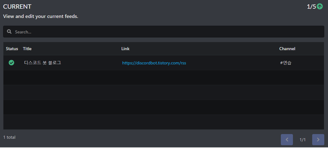그러면 이처럼 위쪽의 추가한 feed 목록에 추가되었음을 확인할 수 있습니다! 무료버전은 이런 식으로 5개까지 추가할 수 있어요.