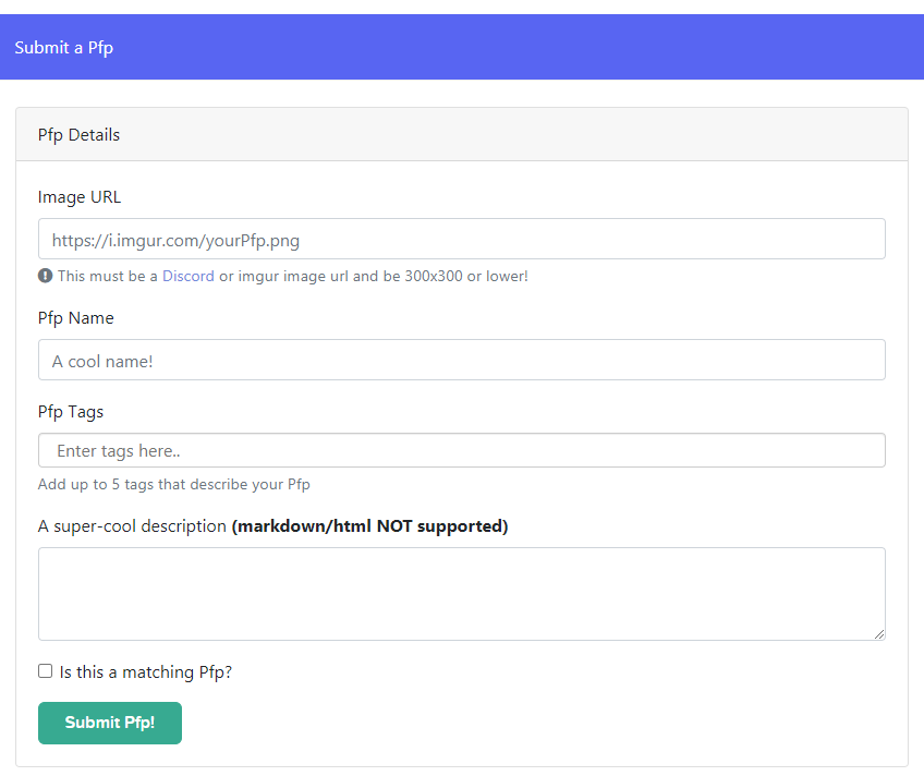 위 내용을 다 적으셨으면 Submit Pfp!를 눌러주세요. 그럼 이제 프로필 사진이 사이트에 업로드 됩니다!