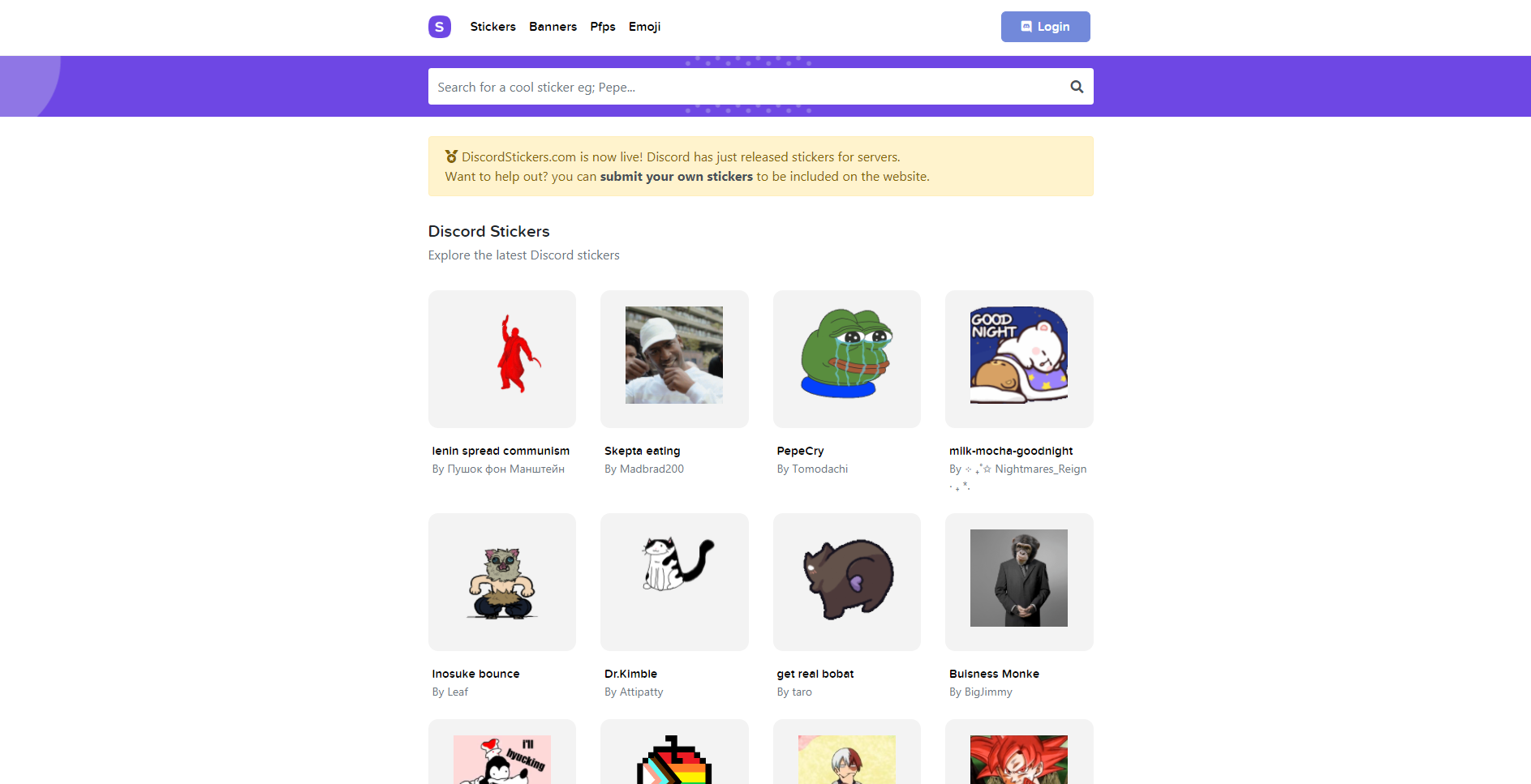 디스코드에 스티커가 추가되었지만 파일 조건이 까다로워 만들기 여간 불편한 게 아닙니다. 그래서 아직까지 서버에 스티커 15개를 추가시키지 않으신 분들이 많으실 텐데요. 그런 분들을 위해 디스코드 스티커를 쉽게 찾고 다운로드하실 수 있는 사이트가 있습니다. discordstickers.com은 여러 가지 디스코드 스티커가 모여있는 사이트입니다. 특히 움직이는 움짤 스티커들이 많이 있어요. 이제 쉽게 디코 스티커를 서버에 적용시켜봅시다!