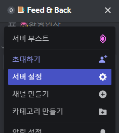 이제 다운로드한 스티커를 서버에 추가해봅시다! 왼쪽 위의 서버 이름을 우클릭 한 다음 서버 설정을 눌러주세요.