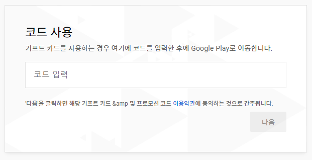 이제 받은 유튜브 프리미엄 코드를 적용시켜봅시다! 위 링크를 클릭해 유튜브 코드 등록 사이트에 들어가 코드 입력 칸에 아까 얻었던 코드를 넣어주세요. 그 후 다음을 눌러 적용시켜 주세요.