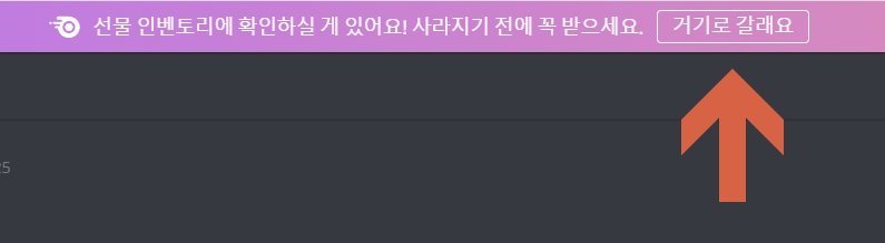 만약 유튜브 프리미엄을 가지고 계시다면 화면 위쪽에 다음과 같이 선물 인벤토리에 확인하실 게 있어요! 사라지기 전에 꼭 받으세요. 라는 문구가 뜰 것입니다. 거기로 갈래요를 클릭해서 들어가주세요.