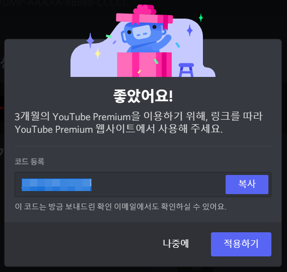 니트로 사용자가 유튜브 프리미엄 코드 얻는 법